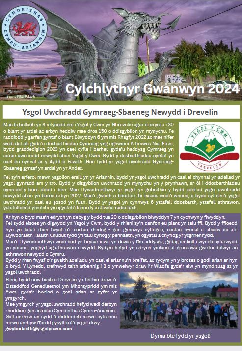 Byddwn yn cyhoeddi’r cylchlythyr ddwywaith y flwyddyn.
