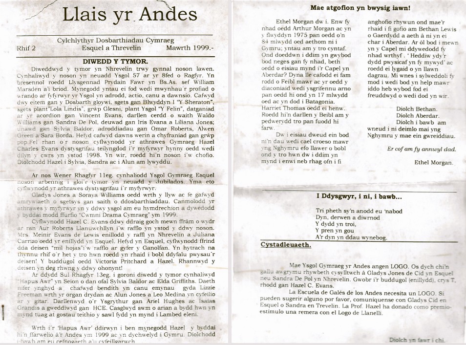 Mawrth 1999: https://cymruariannin.cymru/wp-content/uploads/2025/02/Llais-yr-Andes-Mawrth-1999.pdf